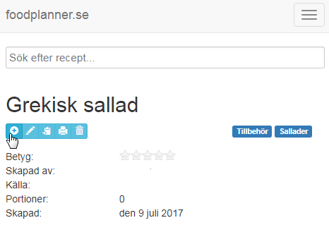Leta upp ett recept och klicka på plus-knappen. Om du inte