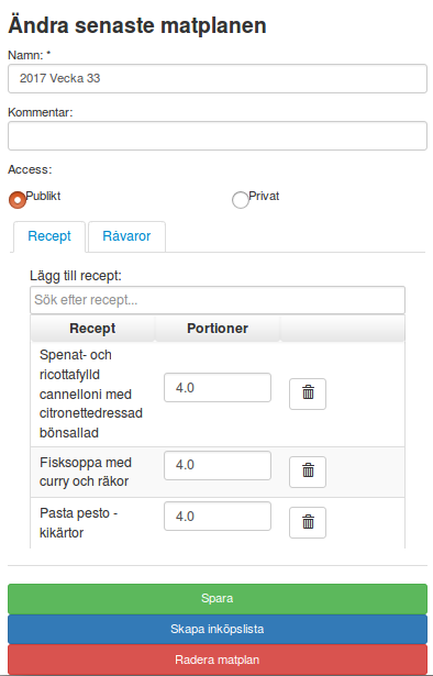 Det är dags att skapa en matplan. En matplan kan vara privat eller publik.