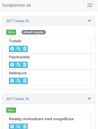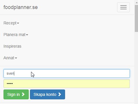 har skapat en matplan redan sedan du loggade in, så skapas en nu.